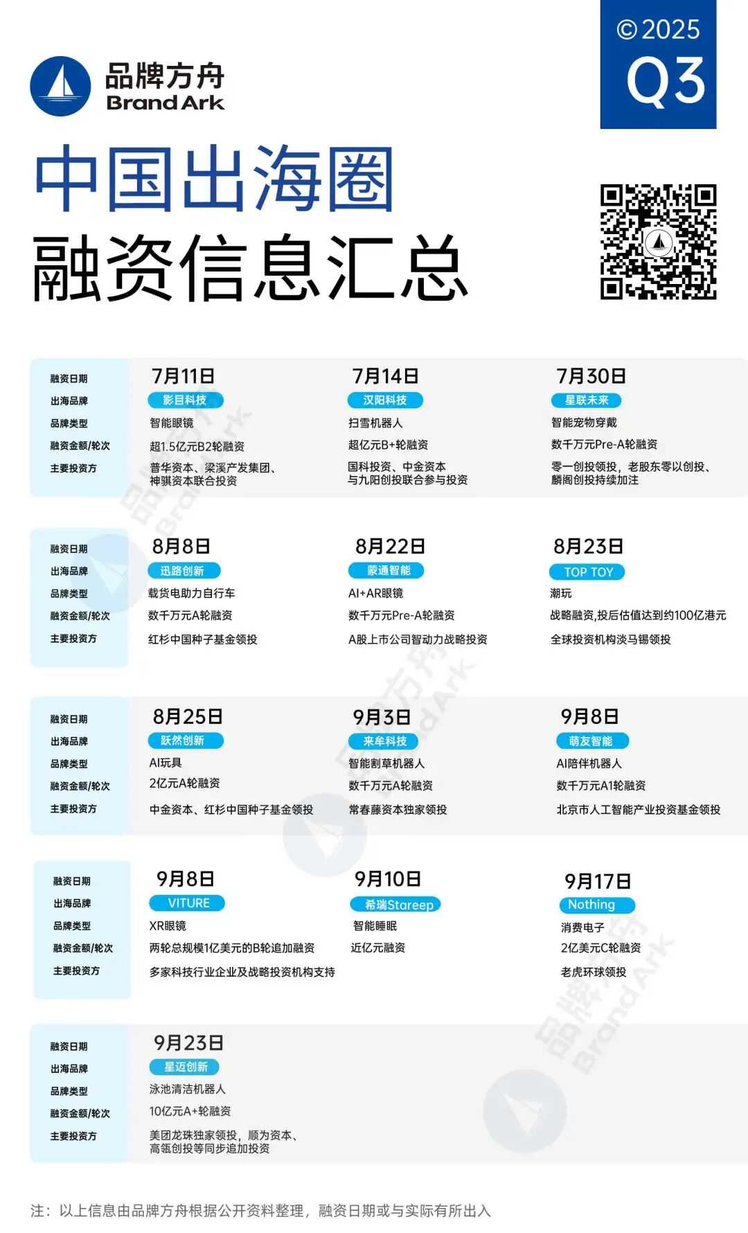 以下为品牌方舟整理的2025年第三季度出海项目融资详情。